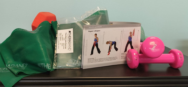All'interno della confezione è presente un libretto di istruzioni, con foto di esercizi da svolgere a casa.